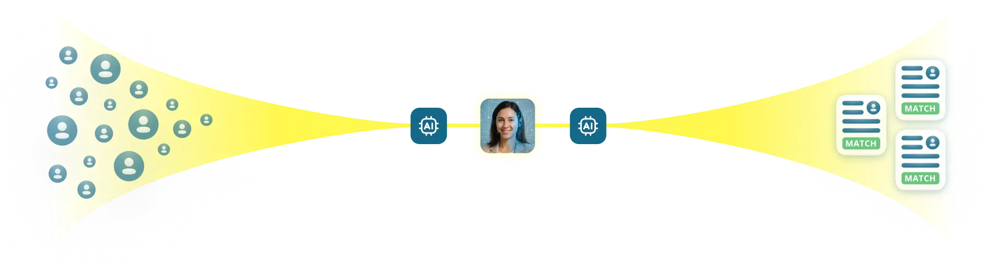 Unsere KI-Agenten helfen Ihnen, schneller die besten Fachkräfte zu finden. Datengestützt, optimiert und skalierbar.