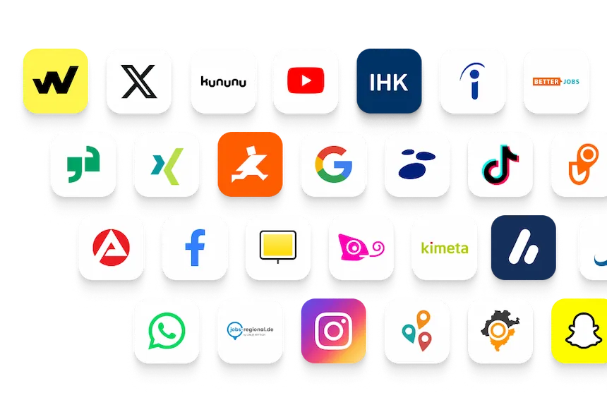 Ihre Stellenanzeigen werden auf über 150 Plattformen veröffentlicht – von großen Jobportalen über Social Media bis hin zu regionalen und branchenspezifischen Netzwerken.